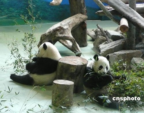 從1月26日農(nóng)歷春節(jié)大年初一正式與臺(tái)灣民眾見(jiàn)面到二月二十八日,大陸贈(zèng)臺(tái)大熊貓“團(tuán)團(tuán)”和“圓圓”吸引臺(tái)灣民眾參觀人數(shù)已突破五十萬(wàn)人。據(jù)臺(tái)北市立動(dòng)物園介紹,雌熊貓“圓圓”二月十日出現(xiàn)發(fā)情跡象,發(fā)情期約兩周。由于“團(tuán)團(tuán)”還未成熟,因此在“圓圓”發(fā)情期間,兩只大熊貓被暫時(shí)隔離。目前,“圓圓”的發(fā)情期已經(jīng)結(jié)束,“團(tuán)團(tuán)”和“圓圓”再度團(tuán)圓。圖為二月二十八日,“團(tuán)團(tuán)”和“圓圓”一起坐在室內(nèi)館中吃竹子。中新社發(fā) 路梅 攝