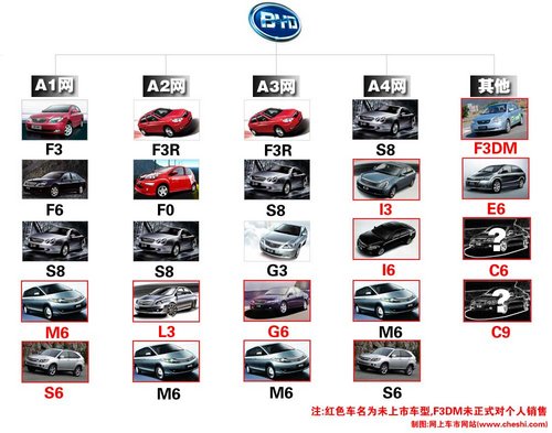 從上面的比亞迪詳細新車規(guī)劃中可以看出,比亞迪未來不僅有A1、A2、A3銷售網(wǎng)絡(luò),還將有A4網(wǎng)絡(luò),而新能源車放在哪個網(wǎng)絡(luò)暫時還不得而知。在四張網(wǎng)絡(luò)下,將推出M6、L3、I6、I3、E6、S6、G6、C6、C9等全新車型,而F3DM雖然已經(jīng)公布售價,但還未對個人銷售,因此也算在比亞迪的規(guī)劃新車中。這其中M6、G6、S6預(yù)計將在明年上市,分別為MPV、B級轎車、SUV車型。