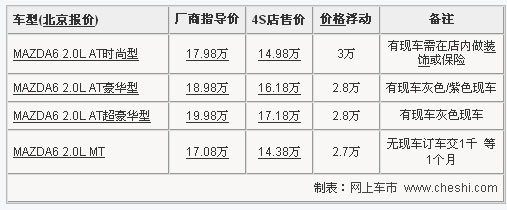 隨著新款馬自達(dá)6的即將上市銷售,目前銷售的老款車型也出現(xiàn)了較大幅度的松動(dòng)。據(jù)網(wǎng)上車市價(jià)格監(jiān)測系統(tǒng)顯示:目前購買馬自達(dá)6的消費(fèi)者最高可享受到最高3萬元的促銷優(yōu)惠,最低售價(jià)已經(jīng)跌破了15萬元關(guān)口,對于一款中級(jí)車而言,這樣的價(jià)格已經(jīng)貼近A級(jí)車的身價(jià)了。
