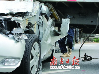 比亞迪轎車上的林先生告訴記者,他們是廣東湛江人,昨天他帶著女朋友和親戚乘坐侄子的小車回老家準(zhǔn)備結(jié)婚。沒想到侄子脾氣不太好,看到貨車司機(jī)在前邊的快車道上不急不慢地行駛,一時急于超車,結(jié)果不小心發(fā)生了撞車,侄子的眉骨被撞裂,傷勢稍微嚴(yán)重一些,其他人則是不同程度的輕傷。