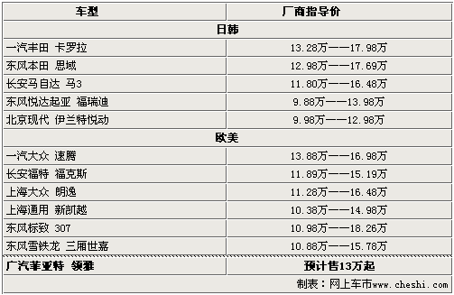 目前國(guó)內(nèi)的A級(jí)車市場(chǎng)競(jìng)爭(zhēng)非常激烈,而近期又有多款新車上市銷售,如:三廂世嘉、福瑞迪等。菲亞特Linea領(lǐng)雅以進(jìn)口方式引入國(guó)內(nèi)銷售的售價(jià)為17.1萬-18.6萬,菲亞特與廣汽合作生產(chǎn)這款車型之后,其售價(jià)也必然會(huì)有所調(diào)整,而廣汽菲亞特的定價(jià)策略也會(huì)參考主要的競(jìng)爭(zhēng)對(duì)手,如:速騰。目前一汽大眾速騰的廠商指導(dǎo)價(jià)為13.88萬——16.98萬元,因此我們預(yù)計(jì)搭載1.4T發(fā)動(dòng)機(jī)的國(guó)產(chǎn)Linea領(lǐng)雅售價(jià)將在13萬以上。