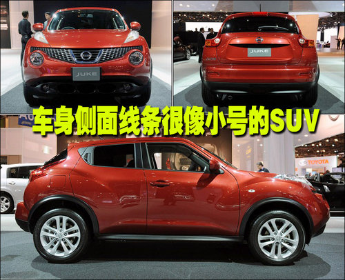 2008年3月東風(fēng)日產(chǎn)正式推出了首款交叉車型逍客(Qashqai)。逍客又可以稱的上是中國汽車市場上的第一款真正意義上的跨界車。逍客不僅擁有SUV的時(shí)尚外觀和越野性,又兼顧了轎車的舒適性和省油優(yōu)勢,憑借這些優(yōu)勢逍客也贏得了大消費(fèi)者的青睞。同時(shí)日產(chǎn)汽車看準(zhǔn)了這個(gè)市場,將大量的人力物力投入到新款交叉車型的研發(fā)上。近日日產(chǎn)就在英國當(dāng)?shù)匕l(fā)布全新一款入門級跨界車型-JUKE,英國當(dāng)?shù)厥蹆r(jià)區(qū)12,795英鎊至19,995英鎊之間,約合人民幣12.7萬——19.8萬元。單從售價(jià)上看JUKE還是相當(dāng)具有市場競爭力的,下面就讓我們一同領(lǐng)略一下JUKE的風(fēng)采。