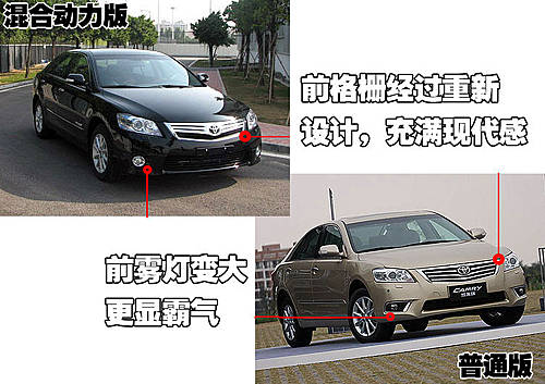 這款混合動力版凱美瑞的整體造型與普通版凱美瑞相同,但前臉部分設(shè)計變得更加前衛(wèi),猶如飛翔的翅膀。混合動力凱美瑞采用了圓形前霧燈,加大的設(shè)計不僅使整車顯得更為霸氣,而且更突出的前進氣隔柵。