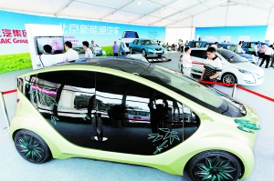 一踏上北京展覽館門前的小廣場,參觀者便立刻被露天擺放在廣場上的各種新能源汽車吸引住了。看起來似乎和普通垃圾車沒什么兩樣的桶裝垃圾運(yùn)輸車與壓縮式垃圾車,實(shí)際上卻是靠電池來運(yùn)行的;北汽的新能源汽車最高時速已經(jīng)可以達(dá)到每小時160公里;小型電動汽車“竹風(fēng)”只需要30分鐘即可快速充電80%……