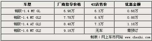 據(jù)4S店銷售人員介紹,目前銳歐全系優(yōu)惠幅度并不大,現(xiàn)售主要是1.4L排量車型,由于賽拉圖兩廂和三廂完全能夠滿足消費(fèi)者的購(gòu)車需要,所以幾乎沒(méi)有消費(fèi)者選購(gòu)1.6L排量的銳歐。1.4L三款車優(yōu)惠價(jià)格從0.68萬(wàn)元到1.18萬(wàn)元不等,同時(shí)店內(nèi)有銀色、紅色等現(xiàn)車可供選購(gòu),現(xiàn)車顏色較為齊全,消費(fèi)者選擇的空間比較大。