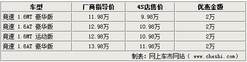近日,青年汽車旗下車型-蓮花競速傳出很快將完全國產(chǎn)化的消息,在前段時(shí)間廠家調(diào)價(jià)降10000元后,市場價(jià)格再次出現(xiàn)波動(dòng)。據(jù)網(wǎng)上車市網(wǎng)站了解,青年蓮花競速車型在北京市場也出現(xiàn)了更多的優(yōu)惠政策,現(xiàn)在購車將在廠家調(diào)價(jià)的基礎(chǔ)上再優(yōu)惠1萬,最低價(jià)格已經(jīng)下探至9.68萬。具體詳情如下: