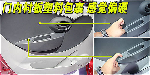 天津一汽威姿V1門內(nèi)襯板由塑料包裹,手觸感覺整體偏硬,胳膊長時間放置會感覺勞累。