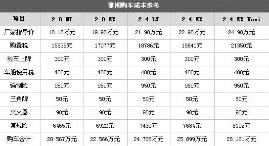 自從08年1月6日第八代雅閣在中國上市以來,憑借良好的外觀、優(yōu)秀的操控性能以及不錯的油耗,一直擁有不錯的銷量。在同級別車中,銷量名列前茅。從第七代雅閣曾經創(chuàng)造的連續(xù)19個月的同級別車的銷量冠軍的記錄,以及目前熱銷的第八代雅閣,充分說明了消費者對雅閣的青睞程度。很多網友非常關注這款車在平時用車成本,以及油耗方面的問題,下面網易汽車編輯就為大家對這款扯得購車成本、保養(yǎng)費用和用車費用三方面做逐個分析。