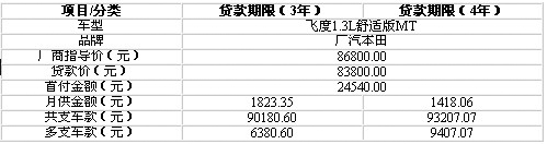 貸款詳解:飛度是小型家用車的典范,這點從它的銷量上就能看出來。缺點么,可能就是大家比較關心的安全和價錢問題?傮w來說,飛度綜合素質較高,是第一臺車的好選擇。該車首付需2萬余元,月供僅需1400余元,對于手頭緊張的消費者來說還是比較劃算的。