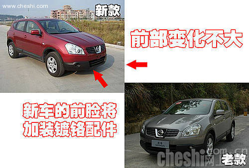 據(jù)該人士介紹:新款逍客不僅采用了國產(chǎn)的CVT變速箱,而且在車輛外觀方面還增加了鍍鉻裝飾條和前后裝飾配件。下面就根據(jù)網(wǎng)上車市獨(dú)家得到的新車諜照,來搶先了解一下新款逍客。