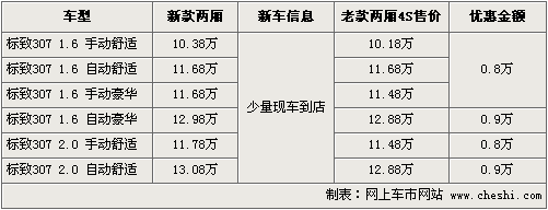 據(jù)東風(fēng)標(biāo)致北京地區(qū)4S店銷售人員介紹,目前還有少量老款307車型在售,優(yōu)惠幅度較大,手動檔車型還贈送加油卡,現(xiàn)在購買比較劃算。新款307車型少量現(xiàn)車已到店,但車型及顏色還不齊全,預(yù)訂要交定金3千元,提車等1個月,而且暫無任何優(yōu)惠。如想購買新款車型的朋友不妨等一陣時間,新款307大批量現(xiàn)車會陸續(xù)到店。