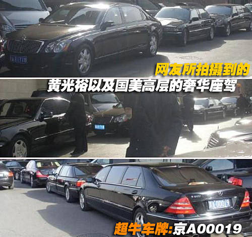 有網(wǎng)友爆料,在昆侖飯店拍到黃光裕等國美高層的“奢侈級”加長豪華轎車,包括黃光裕的邁巴赫62(據(jù)傳擁有兩輛),梅賽德斯-奔馳S600普爾曼等平時很難得一見的車型?梢娪卸嗝吹摹袄L(fēng)”!