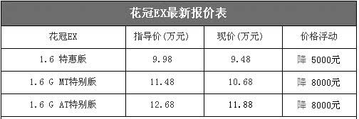 自從花冠EX特惠版上市后,其價格就降到了9萬元區(qū)間,對于購車預(yù)算有限的朋友來說,花冠EX又進入了選擇的視野。昨日,我們從北京地區(qū)的部分一汽豐田汽車綜合經(jīng)銷商處了解到,近期花冠EX的價格穩(wěn)定,最高優(yōu)惠金額仍然穩(wěn)定在8000元的水平,而8月底剛剛上市的花冠EX特惠版也可優(yōu)惠5000元。以下是花冠EX全系車型最新詳細報價表: