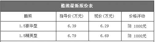 長(zhǎng)城酷熊的外形個(gè)性,但是憑借著突出的性?xún)r(jià)比以及超大的內(nèi)部空間和1.5LVVT發(fā)動(dòng)機(jī)等賣(mài)點(diǎn),上市后取得了非常不錯(cuò)的銷(xiāo)量。不過(guò)最近幾個(gè)月其銷(xiāo)量出現(xiàn)了下滑的勢(shì)頭,8月份僅售出1000輛。編輯昨日從北京地區(qū)的一些長(zhǎng)城汽車(chē)授權(quán)經(jīng)銷(xiāo)商處了解到,近期酷熊的價(jià)格非常穩(wěn)定,全系車(chē)型僅能優(yōu)惠1000元,購(gòu)車(chē)后可贈(zèng)送部分裝飾品。以下是長(zhǎng)城酷熊最新報(bào)價(jià)表:
