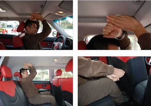 一臺(tái)不足4.1米軸距2.55米的小車內(nèi)部空間如何?上面既是答案。模特身高1.75米左右,在他與駕駛席正常的駕駛坐姿下,后排空間同樣可以坐下身高在1.75米左右的成員,而且空間仍然有一拳以上,前后排頭部的空間也因?yàn)檩^高的車頂設(shè)計(jì)而得到擴(kuò)大,完全不會(huì)感覺(jué)到乘坐不適。