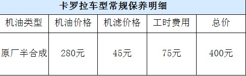 同樣,這臺(tái)發(fā)動(dòng)機(jī)在國(guó)內(nèi)服役時(shí)間也比較長(zhǎng)了,理論上保養(yǎng)費(fèi)用應(yīng)該不會(huì)太高。而通過(guò)調(diào)查,卡羅拉每5000公里進(jìn)行一次機(jī)油保養(yǎng)的400元,相比同級(jí)車(chē)來(lái)說(shuō)算是比較高的,同時(shí)卡羅拉享受一次免費(fèi)的機(jī)油機(jī)濾的保養(yǎng)。