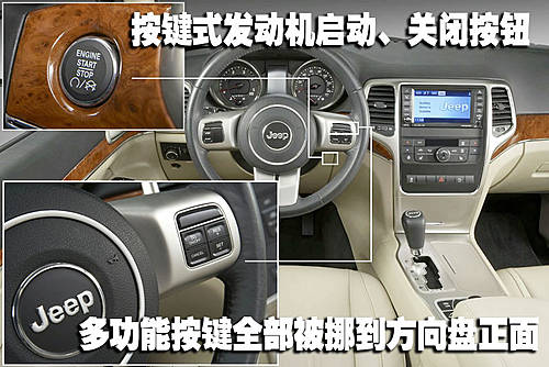 內(nèi)飾部分能夠明顯感覺到JEEP針對時(shí)下大型SUV市場客戶群體喜好所做出的改善,因?yàn)樵熊囆痛_實(shí)是太過于單調(diào)和粗糙了。而新款車型的內(nèi)飾配以淺米色色調(diào)以及精致的真皮座椅和內(nèi)飾襯板以及實(shí)木裝飾,對于不太喜歡越野的消費(fèi)者來說一定會更加喜歡JEEP的。