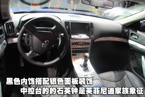 內飾的風格依然保持了英菲尼度家族式的風格,中控臺中央的石英鐘無疑就是它典型的的家族特征。黑色內飾搭配銀色面板裝飾,沉穩(wěn)中不失活力。