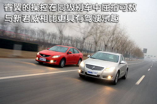 睿翼如同上代馬自達6一樣,具有同級車中較好的操控性,經(jīng)過了幾天兩輛車的試駕,感覺睿翼在操控樂趣上更勝一籌,但對于工作商務(wù)新君威的舒適性以及米色內(nèi)飾更為適用。從初步駕駛感覺來說,兩款車都可以較快的上手,操作上很簡單。