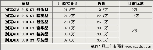 據(jù)4S店銷售人員介紹:目前別克GL8全系大部分車型可優(yōu)惠2萬元,僅有2.5升精英型優(yōu)惠1.6萬元。目前2.5排量車型2款均有現(xiàn)車,但顏色并不齊全,主要有銀色及藍(lán)色。3.0升車型無現(xiàn)車,預(yù)定需等2-3周時間,優(yōu)惠也可到2萬元。目前GL8系列車型經(jīng)過優(yōu)惠后,最低售價不足20萬元。