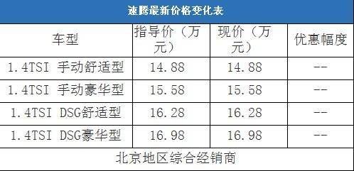 近日,編輯從北京地區(qū)一汽-大眾4S經(jīng)銷商處了解到,速騰1.4TSI有少量現(xiàn)車,但是在4S經(jīng)銷商處購車均需要加裝5000-1.2萬元的汽車裝飾(價值3000元左右的基本裝飾),經(jīng)銷商表示這種加裝方式不能折合成現(xiàn)金。相比之下,速騰1.4TSI車型在綜合經(jīng)銷商處的性價比要高一些,雖然沒有任何現(xiàn)金優(yōu)惠,但是不用加價提車,也不需要加裝汽車裝飾。據(jù)綜合經(jīng)銷商透露,消費者要想以這個價格提車,要在店內(nèi)做一條龍服務(wù)才可以,其中車輛四項基本保險可以打9折。以下是速騰1.4T最新價格變化表: