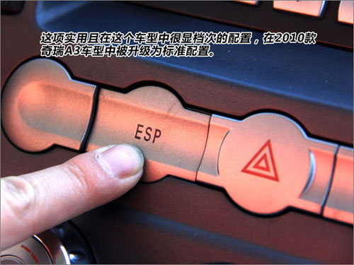 在內(nèi)飾方面,2010款奇瑞A3也是完全沿用了前款車型的設(shè)計,只是在一些安全性配置方面有所加強。首先,她們引以為傲的ESP功能更加親民的改成了全系標(biāo)配。其次在一些高配車型上,由雙氣囊改成了六氣囊,除原有的正副駕駛位的氣囊外,又在兩側(cè)的A、B柱上加裝了安全氣簾,是車輛的安全性得到很到的加強。