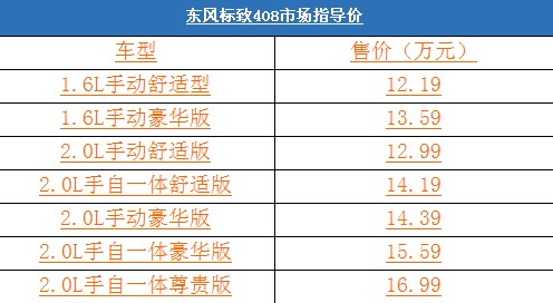 1月25日,東風(fēng)標(biāo)致408在北京全球首發(fā)上市,共推出1.6L和2.0L排量7款車型,售價12.19-16.99萬元。這是標(biāo)致汽車品牌創(chuàng)立120年以來,首次在海外市場全球首發(fā)其最新一代車型。這不僅顯示出中國市場日漸提升的重要地位,更凸顯標(biāo)致汽車乃至PSA標(biāo)致雪鐵龍集團(tuán)的中國戰(zhàn)略重心的進(jìn)一步確立。具體售價如下表: