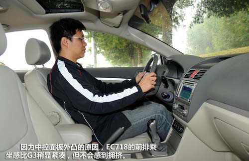 相比起來EC718的座椅走向另一個(gè)“極端”,為了營(yíng)造舒適的乘坐感受,皮質(zhì)和座椅內(nèi)的填充物都選擇了柔軟的規(guī)格,反而失去了應(yīng)有的承托感。而且椅背平坦,未能提供充足的側(cè)向支撐。