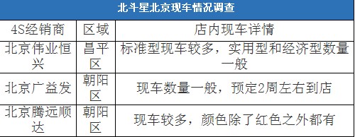 北斗星——現車數量一般,部分車型需預定