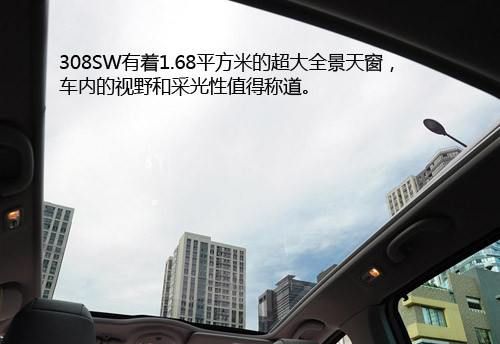 標(biāo)致308SW作為一款進(jìn)口小眾車(chē)型,可能并沒(méi)有太多人熟悉。作為一款休旅款車(chē)型,308SW有著1.68平方米的超大全景天窗。說(shuō)是天窗或許不夠形象,說(shuō)它是玻璃車(chē)頂則很貼切。這個(gè)覆蓋了幾乎三分之二車(chē)頂?shù)奶齑半m不能開(kāi)啟,但加上前風(fēng)擋玻璃和寬大的側(cè)窗及尾窗,占到了車(chē)身總面積的1/3,車(chē)內(nèi)的視野和采光性值得稱(chēng)道。