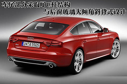 奧迪A5 Sportback四門轎跑車除加長(zhǎng)軸距以外,依然延續(xù)奧迪A5雙門轎跑版的大部分車身結(jié)構(gòu)。不過(guò)在車尾部分采取了對(duì)C柱結(jié)構(gòu)與后窗玻璃改動(dòng)最小的大傾角斜背式設(shè)計(jì),增加了實(shí)用性。
