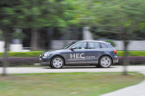 在科技日上,一款令人意想不到的氫燃料電池車——奧迪Q5 HFC(Hydrogen Fuel Cell)氫燃料電池車也出現(xiàn)在試乘車型隊伍中。我們試乘后的感受是,與內(nèi)燃機(jī)Q5相比,這款車的動力毫不遜色,聲音非常安靜,而且這款車排出的只有水而沒有任何廢氣。