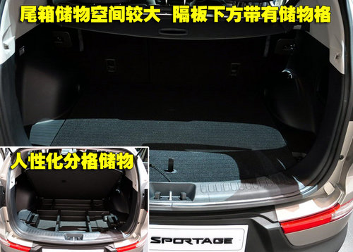 對于起亞SLC而言,儲物是它的最大強項,當后排座椅完全放倒下,備箱儲物空間進一步加強。另外備箱的開口也很大,便于取放較大的物品。備箱隔板下另設有暗藏的儲物格,并且?guī)в蟹指粼O計,存放小物品時也更加方便,人性化設計值得稱贊。