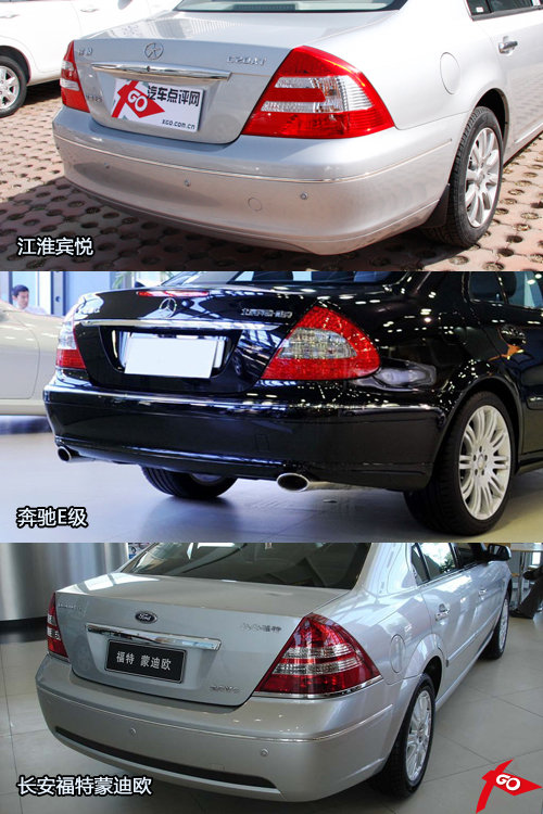 至少編輯我感覺(jué)江淮賓悅很大氣,不過(guò)如果你對(duì)汽車(chē)車(chē)型比較熟悉的話,第一眼從側(cè)面看到它你會(huì)認(rèn)為是臺(tái)福特的老款蒙迪歐,從尾部看去是臺(tái)奔馳E級(jí),走到車(chē)前……奔馳S級(jí)……
