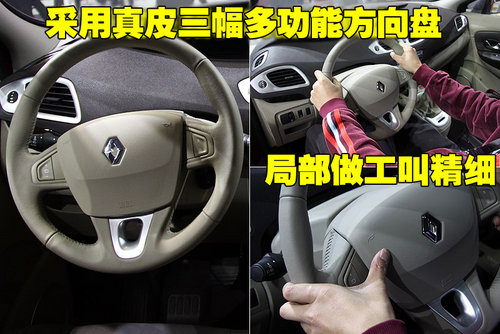 雷諾新風景的方向盤左右兩側(cè)控制桿為塑料材質(zhì)包裹,手觸感覺十分的細膩,無論是看、觸都能感覺到這部分材料的制作工藝和整體質(zhì)量都很出色,值得一提的是這款車的旋鈕設計能夠滿足手指粗大駕駛者的使用及調(diào)節(jié)。