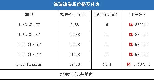近日,編輯從北京地區(qū)東風(fēng)悅達(dá)起亞4S經(jīng)銷(xiāo)商處了解到,福瑞迪1.6L車(chē)型的現(xiàn)車(chē)充足,目前購(gòu)車(chē)最高可以?xún)?yōu)惠1.1萬(wàn)元,性?xún)r(jià)比很不錯(cuò)。據(jù)經(jīng)銷(xiāo)商透露,消費(fèi)者要想以這個(gè)價(jià)格提車(chē),需要在店內(nèi)做購(gòu)車(chē)一條龍服務(wù),車(chē)輛商業(yè)險(xiǎn)可以打9折。