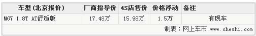 據(jù)名爵汽車4S店銷售人員介紹,目前北京地區(qū)MG7車型的現(xiàn)車并不充足,只有1.8T舒適版手自一體車型有現(xiàn)車,其他車型暫無現(xiàn)車,如有意向購(gòu)買需要預(yù)訂,訂金為5000元,預(yù)計(jì)提車時(shí)間為一個(gè)月左右。購(gòu)買有現(xiàn)車的1.8T舒適版手自一體車型可以獲贈(zèng)價(jià)值1萬5千元的大禮包,其中包括8000元的現(xiàn)金優(yōu)惠和7000元的裝飾贈(zèng)送。