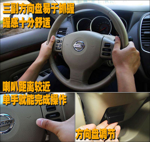 東風(fēng)日產(chǎn)新軒逸為三幅真皮包裹方向盤(pán),車主可以根據(jù)習(xí)慣來(lái)自行調(diào)節(jié)方向盤(pán)高度。方向盤(pán)集成了音量控制、藍(lán)牙及定速巡航,在行駛中無(wú)需讓手離開(kāi)方向盤(pán),就可輕松完成駕駛輔助(如定速巡航)與舒適(如音響系統(tǒng)、藍(lán)牙等多功能控制系統(tǒng))操作。