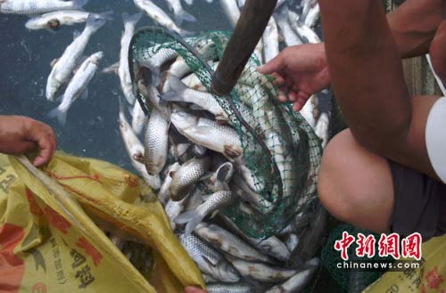 據(jù)此前官方媒體報(bào)道,截至12日上午,汀江流域和位于永定縣境內(nèi)的棉花灘庫(kù)區(qū)出現(xiàn)了大面積的死魚(yú)和魚(yú)中毒浮起現(xiàn)象,據(jù)初步統(tǒng)計(jì),僅棉花灘庫(kù)區(qū)死魚(yú)和魚(yú)中毒就達(dá)378萬(wàn)斤之多。