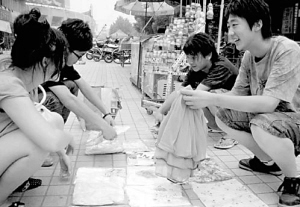 實際上,許多大學(xué)生在讀期間,都有過擺攤的經(jīng)歷,有的人小賺了一把,有的人僅僅持平。廣東商學(xué)院市場營銷專業(yè)的大三學(xué)生徐杰星,當(dāng)過多次“走鬼”。他認為,當(dāng)“走鬼”的經(jīng)歷對自己所學(xué)的專業(yè)是一種實踐!翱吹揭粋家住高明的朋友,在家鄉(xiāng)擺攤當(dāng)走鬼,覺得很有意思,就跟著他一起做,想賣點比較有創(chuàng)意的東西”。春節(jié)期間,小徐抓住節(jié)日商機,從廣州批發(fā)了一批年貨到家鄉(xiāng)南海區(qū)獅山鎮(zhèn)官窯去擺攤,在春節(jié)期間果然小賺了一把。