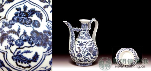 據(jù)云南典藏有關負責人介紹,拍賣“標王”青花開光折枝花果紋執(zhí)壺通體施以白釉,釉質青白透澈,肥潤晶瑩,青花發(fā)色翠藍深沉,局部有鐵銹斑,圖案為上等“蘇麻離青”鈷料所繪。從文物藝術品的收藏價值來看,執(zhí)壺整器端莊大氣,做工精湛,屬于明代永樂時期青花瓷中的代表之作。目前,除國內外的文物館藏之外,同類器物能在國內外市場上流通的可謂屈指可數(shù),很少見諸于市,因此也就更加彌足珍貴了。