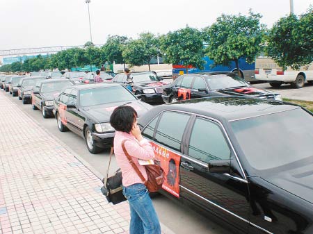 昨日下午2時30分許,在兩輛“三菱”越野車的帶領(lǐng)下,30輛清一色的黑色奔馳轎車列隊駛?cè)胛靼蚕剃枃H機場停車場,引起不少過往乘客駐足觀看。 “不知道哪位貴賓要來西安?”不少人都小聲議論著。30輛黑色奔馳轎車中,西安本地牌照的不少,還有北京、天津牌照的車輛,全部為S500、S6OO系列。