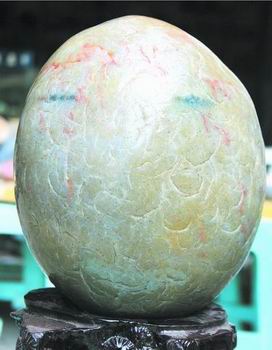 經(jīng)專(zhuān)家鑒定,這塊石頭是罕見(jiàn)的玉化了的“五彩云紋石”,非常難得,通常只有四川岷江才有,價(jià)值在5萬(wàn)至8萬(wàn)元之間。(侯莉 成都商報(bào)記者 何東 攝影報(bào)道)