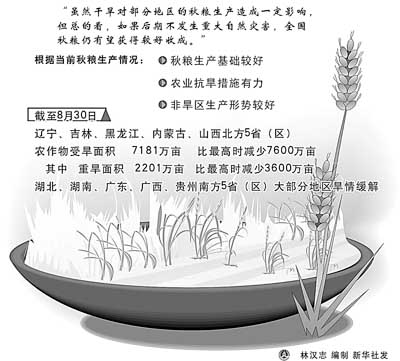 陳萌山表示,隨著近期旱區(qū)大范圍降雨和抗旱措施進(jìn)一步落實(shí)到位,南方和北方旱情均明顯緩解?偟膩砜,如果后期不發(fā)生重大自然災(zāi)害,全國秋糧仍有望獲得較好收成。作出該判斷基于幾個(gè)方面: