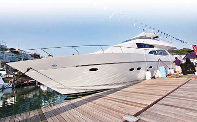 西貢匡湖游艇會(huì)昨日起舉辦為期4日的“國際游艇展”,有來自臺(tái)灣、法國、英國和美國等共59個(gè)參展商,展出逾百艘游艇,并有附設(shè)釣魚塔的游艇,展品總值約6億元?锖瓮(huì)總經(jīng)理吳宛湄表示,隨著經(jīng)濟(jì)好轉(zhuǎn)及不少內(nèi)地買家來港選購游艇。