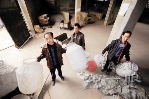 老熊家里弄了5個(gè)酒窖,以前每個(gè)月能生產(chǎn)5000多公斤白酒。今年卻已經(jīng)停產(chǎn)3個(gè)多月,酒曲堆放在屋角,酒池蒙上了一層細(xì)灰。他說:“5個(gè)酒窖如果全部開工,每天需要大約2噸水。以前泉水和自來水都很充足,F(xiàn)在泉水基本干涸了,自來水也得不到保證,所以春節(jié)后酒廠就停產(chǎn),不曉得什么時(shí)候能開工!