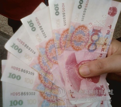 上午,家住綿陽(yáng)御營(yíng)壩的錢先生向記者介紹說(shuō),他前幾天在御營(yíng)壩一柜員機(jī)上取了一千元錢,與朋友一起到某餐館吃飯買單時(shí),收銀員告訴他二百元是假幣,錢先生將自己所取的一千元錢全部拿到驗(yàn)鈔機(jī)上進(jìn)行檢驗(yàn),發(fā)現(xiàn)除一張是真幣外,其余九張都是HD95版本的鈔票。由于他在取錢時(shí)沒(méi)有索要取款票據(jù),現(xiàn)在手里拿的9張HD版鈔票只好自認(rèn)倒霉。