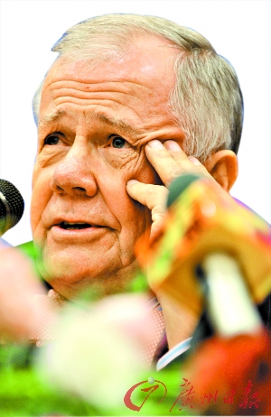 與索羅斯、巴菲特齊名的國(guó)際三大投資大師之一——吉姆·羅杰斯昨日出席了由中國(guó)貿(mào)易促進(jìn)委員會(huì)和廣州市政府主辦、廣州市貿(mào)促會(huì)承辦的第二屆中國(guó)國(guó)際金融服務(wù)貿(mào)易洽談會(huì),他與本報(bào)記者對(duì)話國(guó)際經(jīng)濟(jì)危機(jī)的發(fā)展及演變趨勢(shì)時(shí)闡述了他的獨(dú)到觀點(diǎn)。