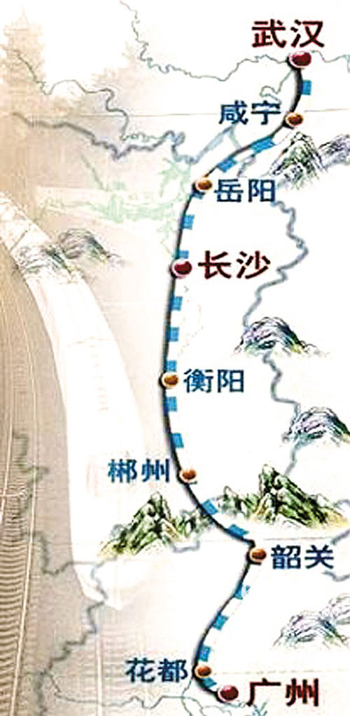 武廣客運(yùn)專(zhuān)線起于楊春湖畔的新武漢站,經(jīng)咸寧、赤壁、岳陽(yáng)、長(zhǎng)沙、株洲、衡陽(yáng)、郴州、韶關(guān)、花都,抵達(dá)番禺鐘村鎮(zhèn)的新廣州站,縱貫鄂、湘、粵三省。國(guó)內(nèi)幾乎所有大型鐵建單位都“搶”到了項(xiàng)目———大家都清楚,這場(chǎng)大會(huì)戰(zhàn)是一次絕好的練兵機(jī)會(huì),從中獲得的經(jīng)驗(yàn)可為日后更多、更龐大的高鐵工程提供參考。