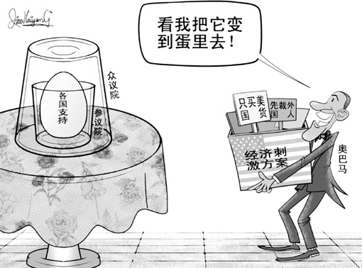 我們有必要注意奧巴馬總統(tǒng)的微妙處境。對于美國國會討論中的“買美國貨”條款,世界各國可謂是軟硬兼施。一方面,各國紛紛表示了強烈的反對聲音,并揚言報復。但在另一方面,各國政要和媒體又表達了對魅力領(lǐng)袖奧巴馬的厚望。正如朝日新聞社在2月6日的社論所指出的,世界各國對奧巴馬的厚愛,使得他處于一種很微妙的政治立場。國內(nèi)形勢敦促他支持一定程度的貿(mào)易保護主義政策;而他國人們則期待新總統(tǒng)實踐在競選中承諾的自由主義外交政策。